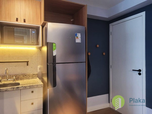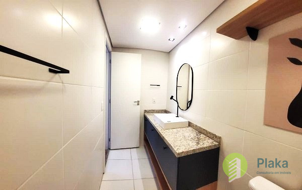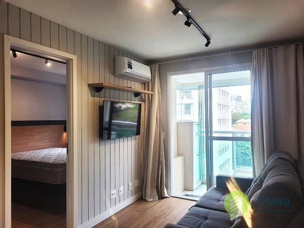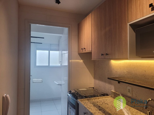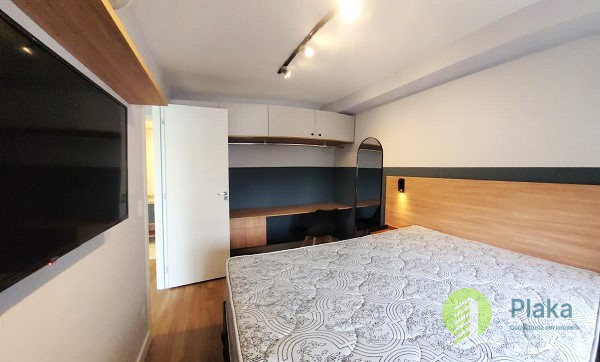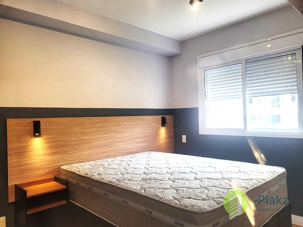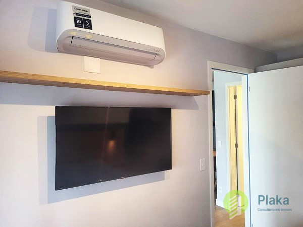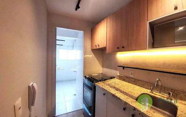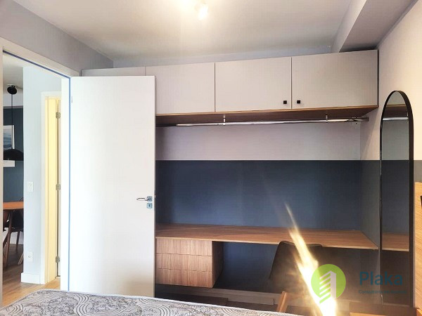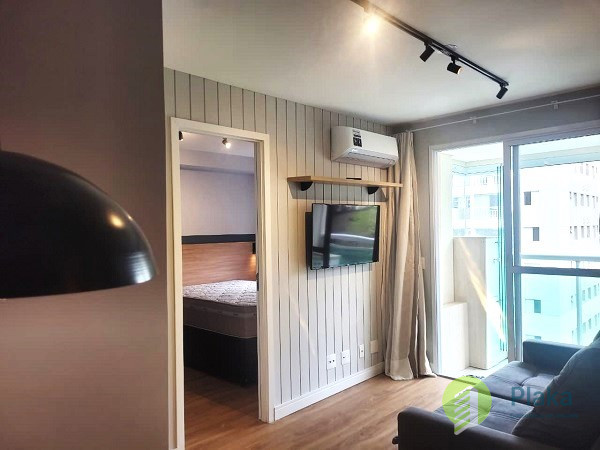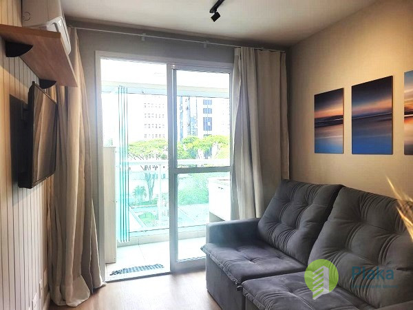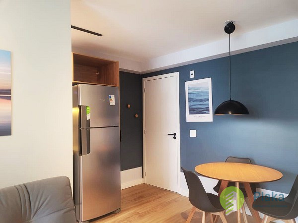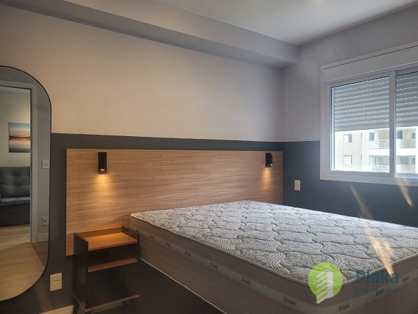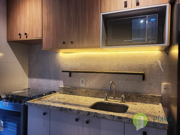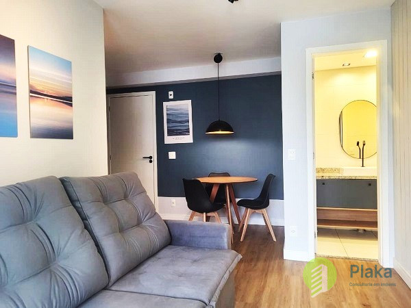 Apartamento NOVO, primeira locação, 42m2 de área útil distribuídos entre 01 dormitório mobiliado com cama de casal, armário de parede conjugado com mesa para home office, piso laminado e persiana, tudo NOVO. Sala com sofá para 2 lugares grande, smart TV na parede, mesa com cadeiras para refeições e varanda envidraçada com pia. Cozinha americana com armários planejados, geladeira e fogão de piso, tudo NOVO. Banheiro amplo com box em vidro temperado, ducha com aquecimento a gás e espelho solto na pia. o apartamento possui 01 vaga de garagem em local indeterminado.