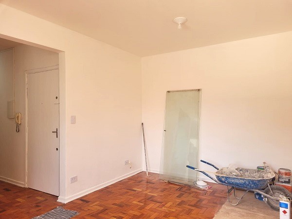 Apartamento da década de 70, totalmente reformado, 02 dormitórios sem armários, piso revestido com tacos de madeira com sinteco NOVO e pintura de tetos e paredes com pintura branca NOVA. Banheiro social amplo com box em vidro temperado e louça NOVA. Sala ampla, cozinha com copa, pia com gabinete e armário de piso NOVOS e área de serviço com banheiro de serviço. O apartamento não possui vaga de garagem.