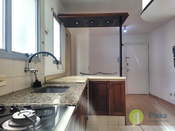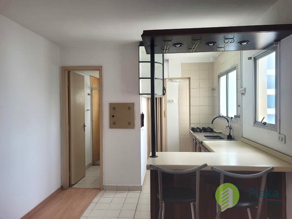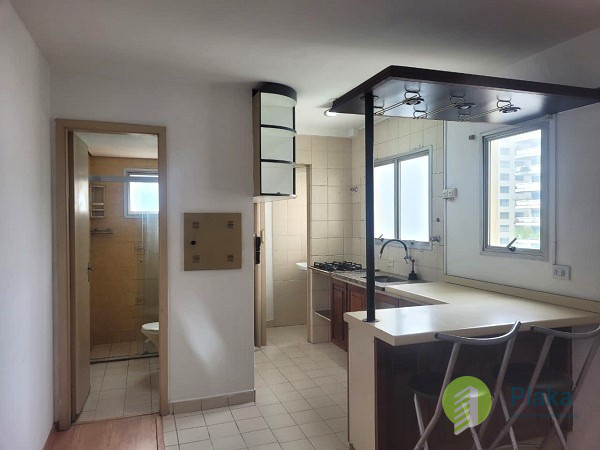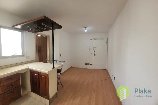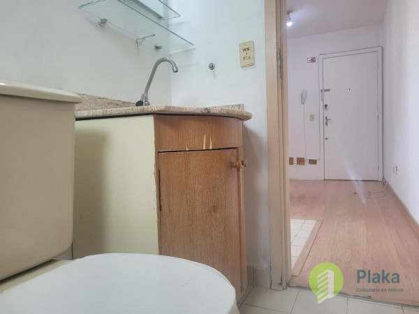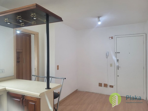 Apartamento do início da década de 90, com 33 anos de construção executada pela CYRELA, apartamento com 28m2 de área útil bem distribuídos, todos ambientes com janela, dormitório com armário embutido e guarda roupa, piso laminado e janela anti ruído. Sala com um só ambiente, cozinha americana com armários e área de serviço com tanque de lavar. Banheiro com box em vidro e ducha elétrica. O apartamento possui 01 vaga de garagem em um dos dois sub solos ou no pavimento térreo, local indeterminado.