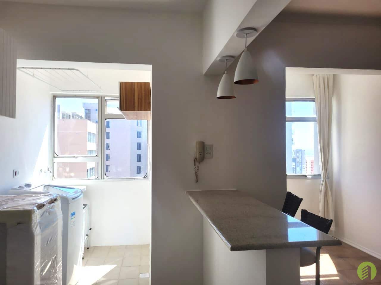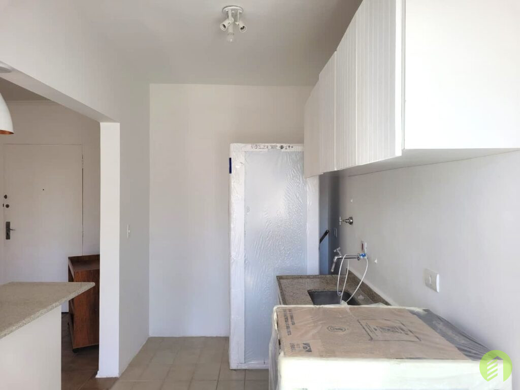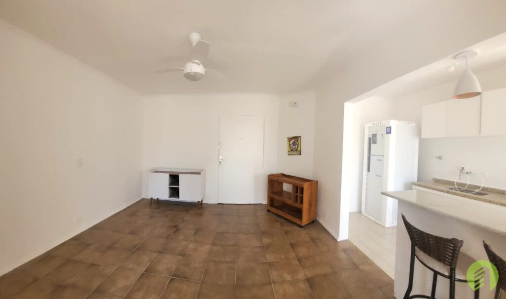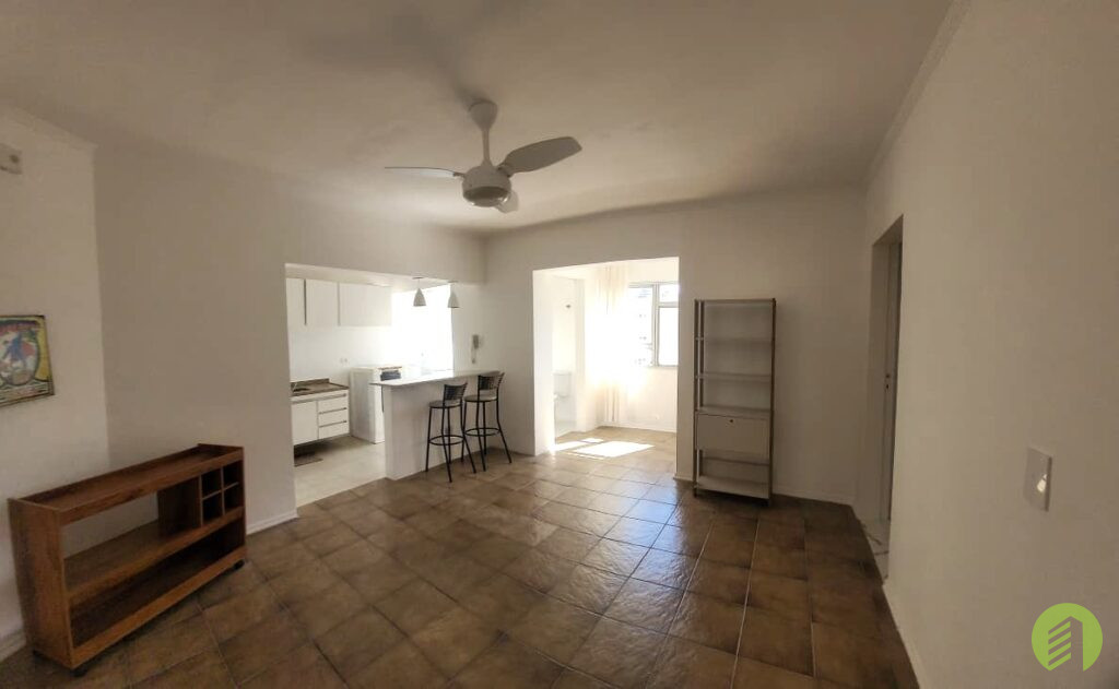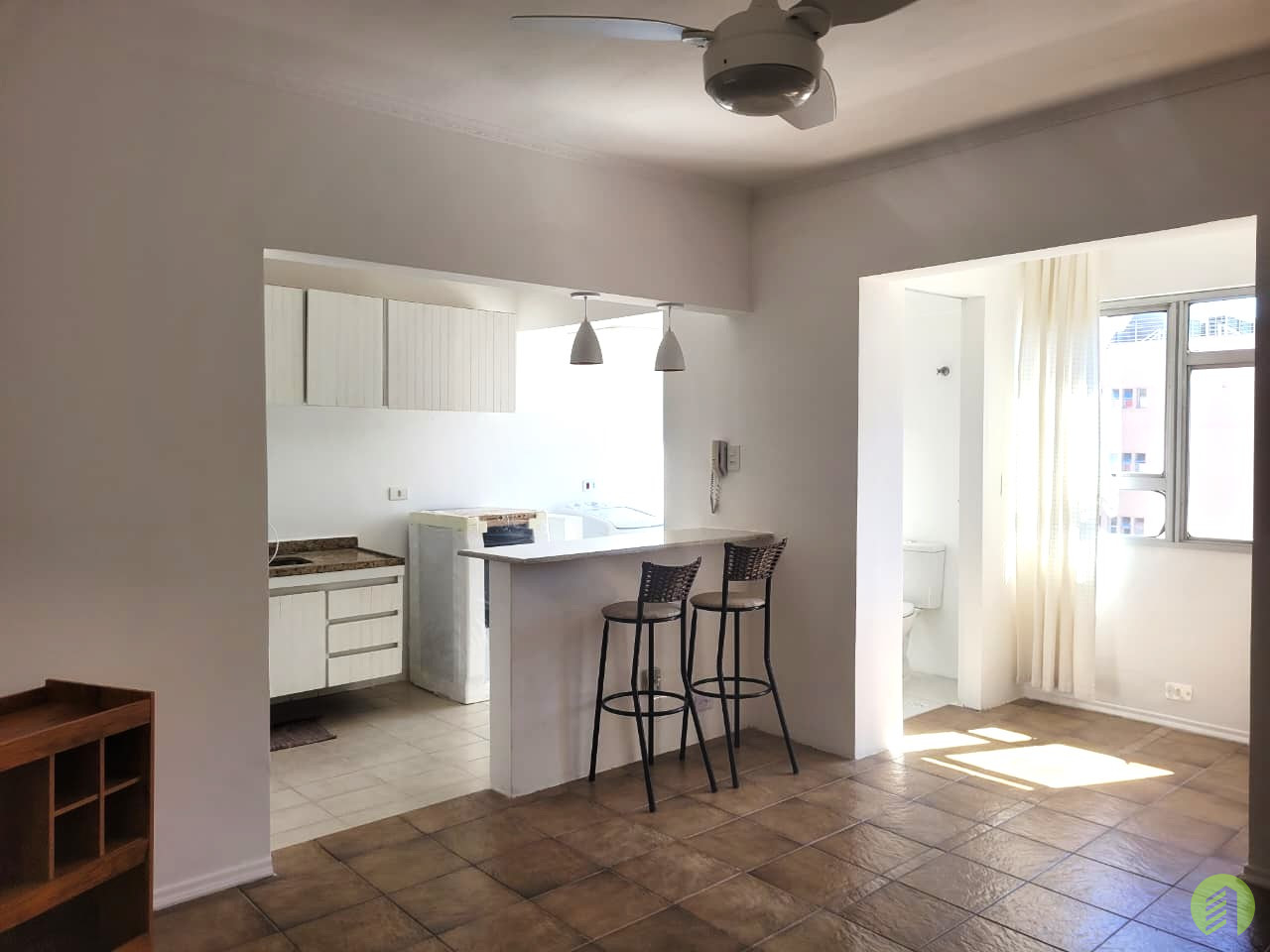 Apartamento do início da década de 80, construção com 44 anos, possui 50m2 de área útil em 01 dormitório tipo suíte com belo armário embutido e cama de casal NOVA, piso revestido com porcelanato NOVO e ótima iluminação, Banheiro com box em acrílico e ducha elétrica. Sala espaçosa com piso em cerâmica e lavabo social integrados à cozinha americana, esta com armários de parede, geladeira NOVA , fogão NOVO e área de serviço iluminada e ventilada. O apartamento possui 01 vaga de garagem em local indeterminado.