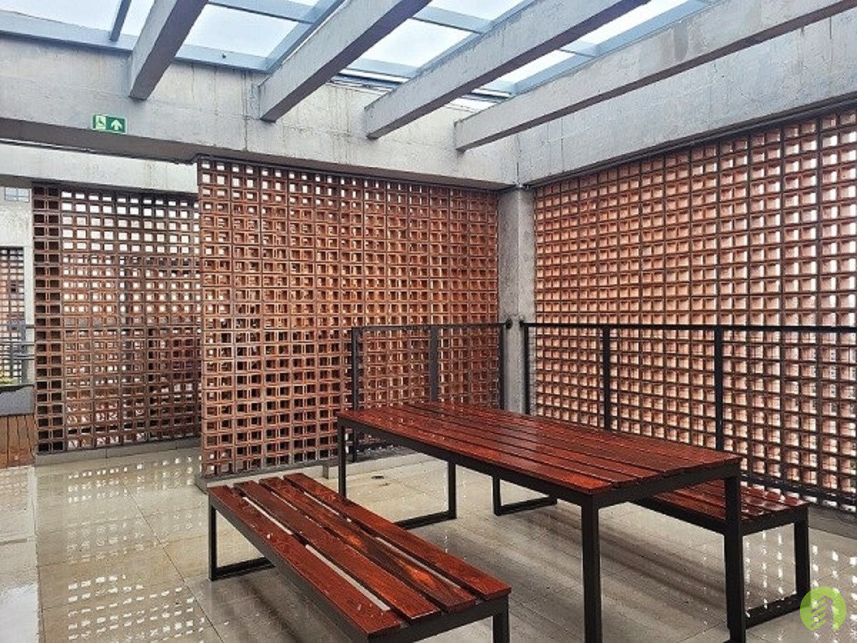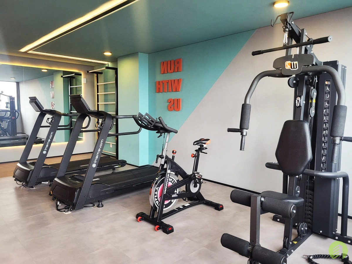 Lazer dividido entre a cobertura: espaço churrasco com mesa e cadeiras, sala de ginástica equipada e piscina com raia; segundo andar: salão de festas, salão de jogos, espaço delivery, bicicletário, lavanderia, mini mercado e coworking.