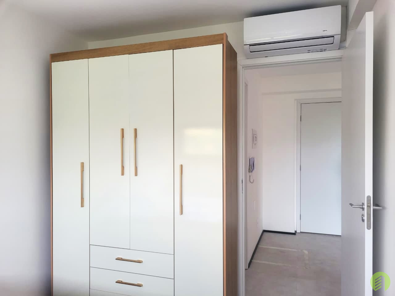Apartamento com 03 anos de construção, NOVO, apartamento de 01 dormitório com guarda roupa, cama de casal e iluminação instalada funcionando em todos os ambientes. Sala que divide espaço com a cozinha americana, piso revestido com porcelanato, armário de cozinha e gabinete com cooktop duas bocas e ainda conta com uma varanda que permite colocar mesa com 4 lugares. O APARTAMENTO NÃO POSSUI VAGA DE GARAGEM. Poderá ser instalada geladeira pelo proprietário,