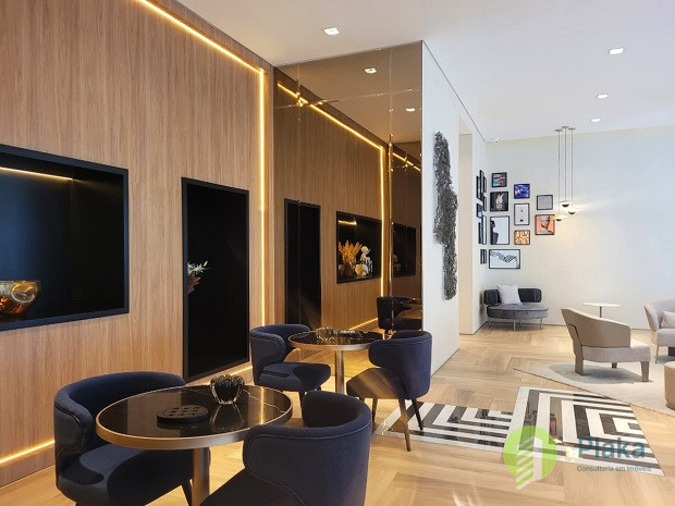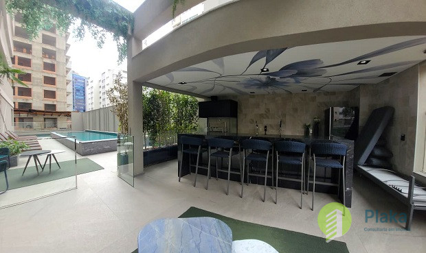 Condomínio com belíssima fachada, hall de entrada de cinema, decoração primorosa e acabamento de primeiríssima! Logo no primeiro andar temos a piscina com raia, espaço para confraternização servido por churrasqueira, mesa balcão em granito preto, mesas, paisagismo, pia com mesa em granito e até uma chopeira; academia de ginástica equipadíssima, sala para reunião, salão de festas completo e lavanderia. No pavimento térreo temos o espaço para pet e bicicletário, tudo impecável!