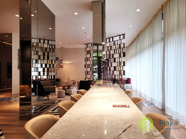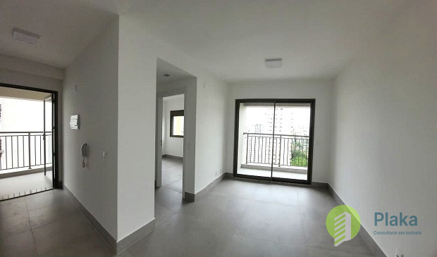 Apartamento recém entregue, projeto e construção da CYRELA, apartamento com 40m2 distribuídos em sala com piso revestido em porcelanato terminando em uma varanda com vista da região, segue a cozinha americana com armários planejados de parede, gabinete de pia e nicho para forno elétrico, tudo em MDF. Pia com bancada em granito e cooktop 2 bocas, tudo NOVO. Banheiro com lavatório externo e será instalado box em vidro temperado e espelho de parede. Dormitório com armário feito sob medida em MDF e por último temos a área de serviço com tanque de lavar roupa e extensa varanda para multi uso. Aquecimento de água central. O apartamento não possui vaga de garagem.