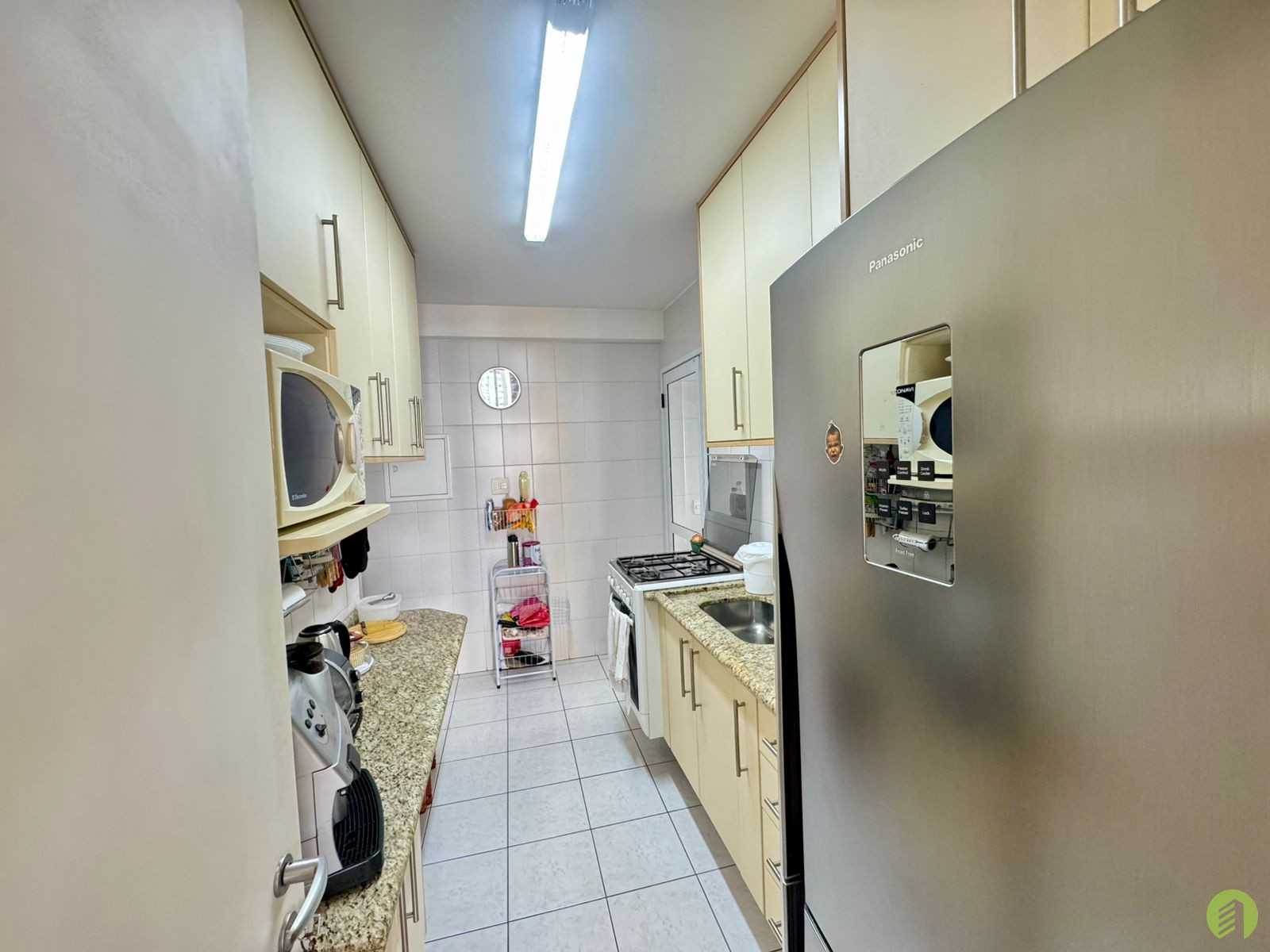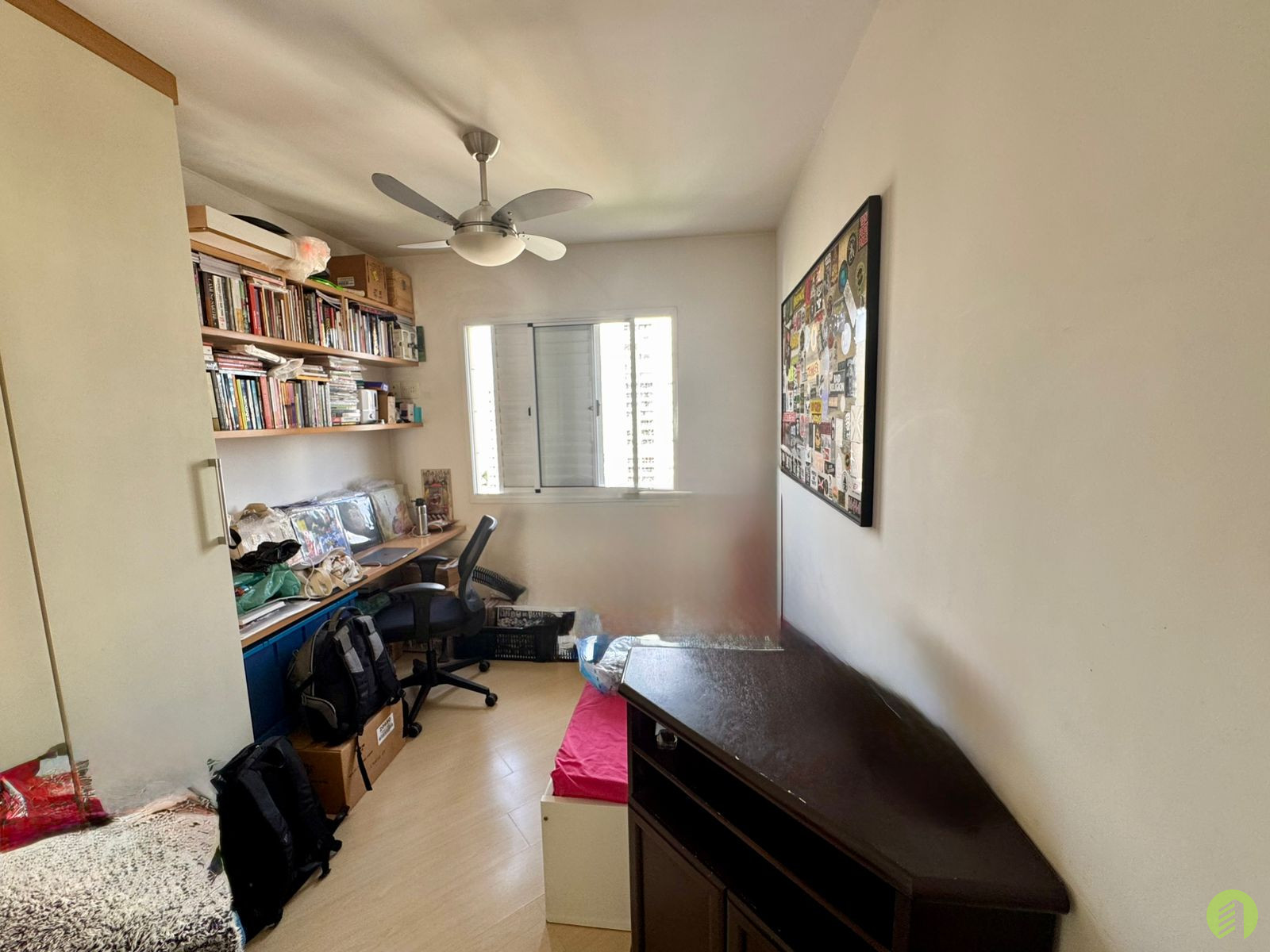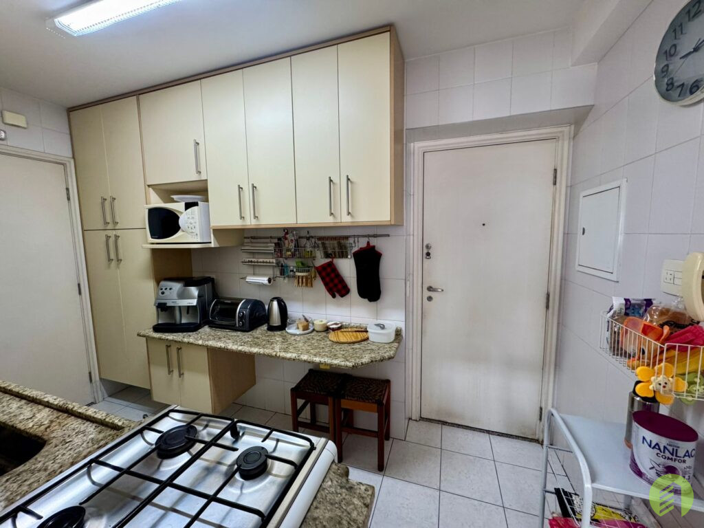 Apartamento do início da década de 2000, com 24 anos de construção, possui 90m2 de área útil distribuídos em 02 dormitórios, um dos quais tipo suíte com closet, piso de ambos revestido com laminado e armário embutido. 2 banheiros com box em vidro e aquecimento de água à gás. A sala ganhou um espaço a mais, uma vez que o terceiro dormitório foi desfeito e passou a integrar a sala que ainda tem uma bela varanda com vista livre da região. Cozinha com armários, área de serviço e quarto que pode ser convertido em escritório e ainda o banheiro de serviço. O apartamento possui 02 vagas de garagem.