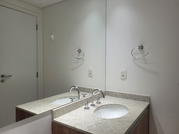 Condomínio NOVO com praça de convivência na área externa, jardim e mesas ao ar livre ( com cobertura ), acesso a um café no condomínio gêmeo ( comercial ) e controle de acesso digital nas áreas comuns. Ainda no pavimento térreo o condomínio oferece salão de festas lindamente decorado, com cozinha americana de apoio e lavabos. Uma vez no oitavo no andar o morador terá acesso a uma área externa ampla com bancos, uma piscina com revestimento feito com pedras vulcânicas e sala de ginástica equipada.