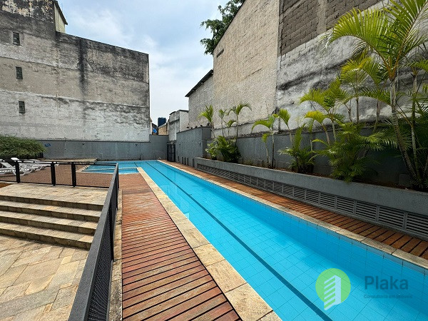 Condomínio com piscina, sala de ginástica, churrasqueira, salão de festas e salão de jogos.