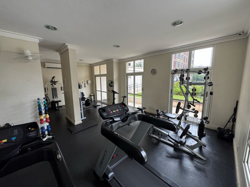 Condomínio que oferece churrasqueira, piscina, salão de festas, sala de ginástica e gerador.