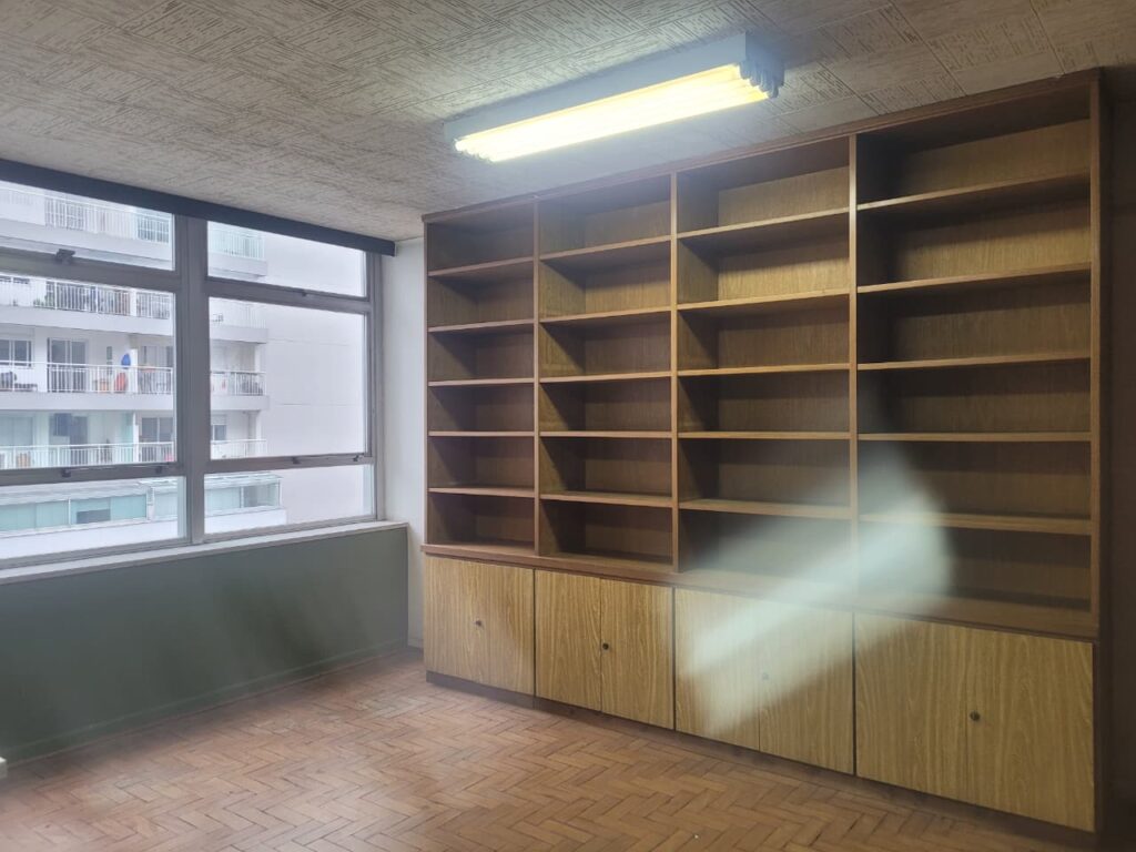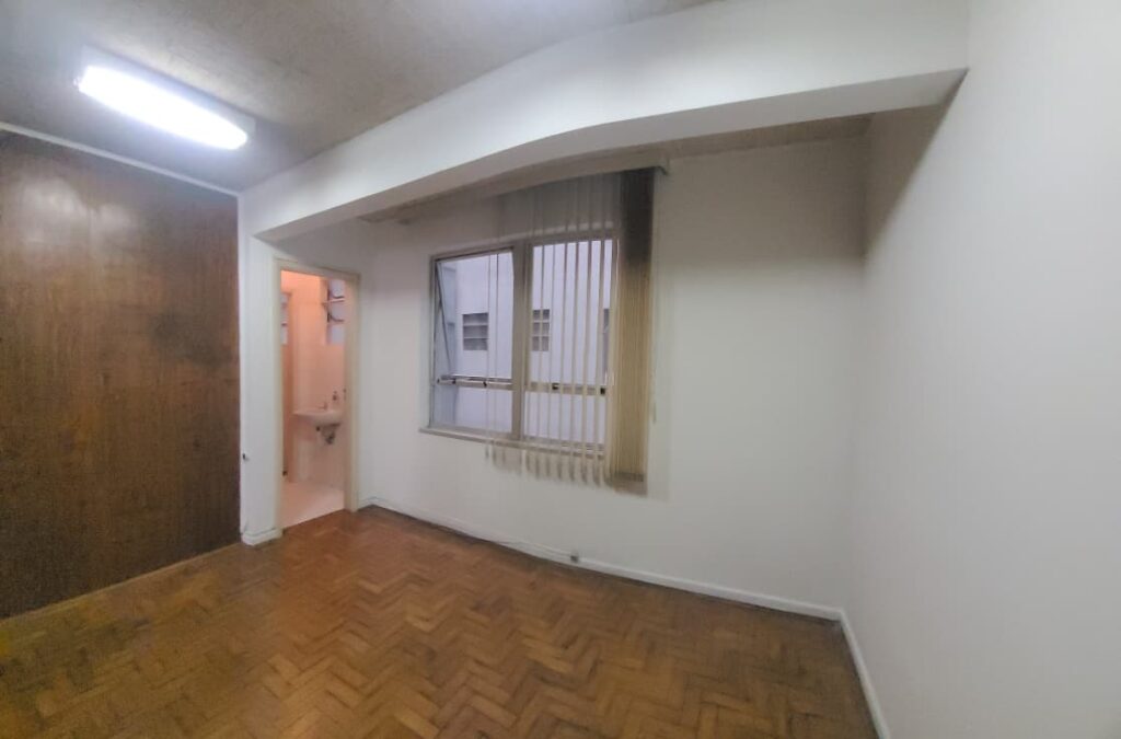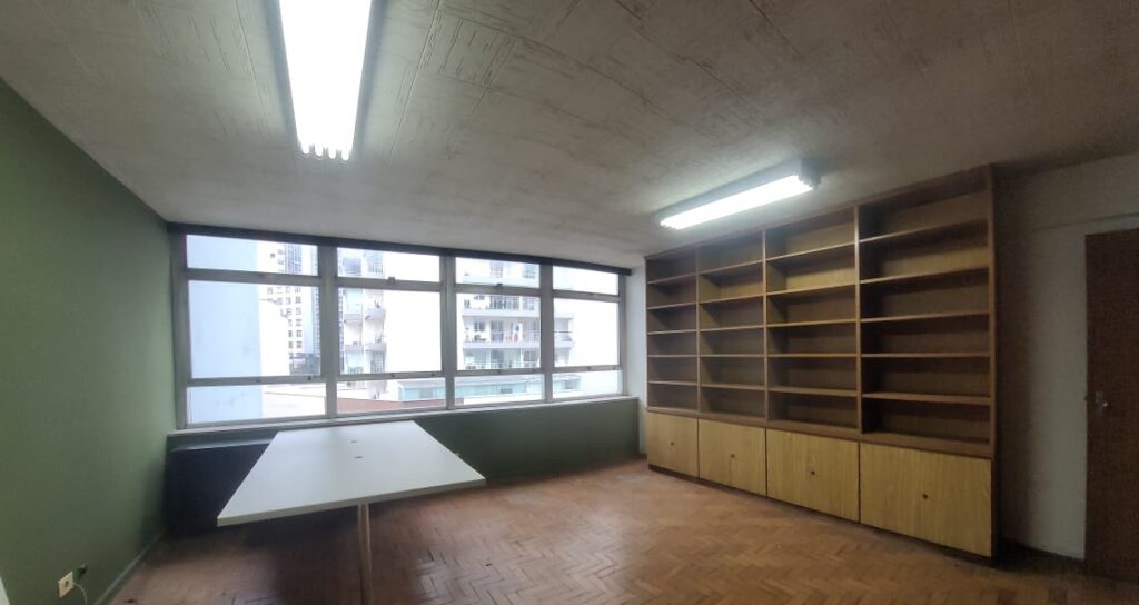 Conjunto comercial com 51m2 de área útil distribuídos entre duas salas com piso em taco e armário de parede com prateleiras abertas e janelas amplas que facilitam a entrada de iluminação natural. Lavabo social e 01 vaga de garagem.
