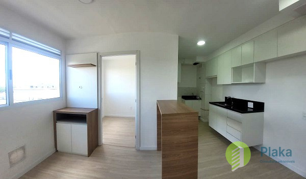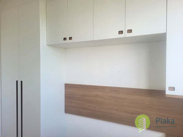 Apartamento NOVO, primeira locação, um ano de construção, 32m2 de área útil com 2 dormitórios, ambos com armários sob medida em MDF e piso revestido com laminado. Sala com mesa balcão e painel para TV. Cozinha e área de serviço com armários sob medida em MDF. Banheiro com pia em granito e gabinete, além de box em vidro temperado incolor. O apartamento NÃO POSSUI VAGA DE GARAGEM.