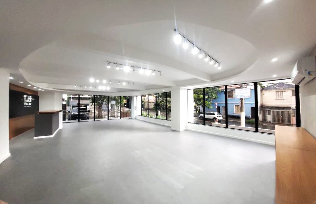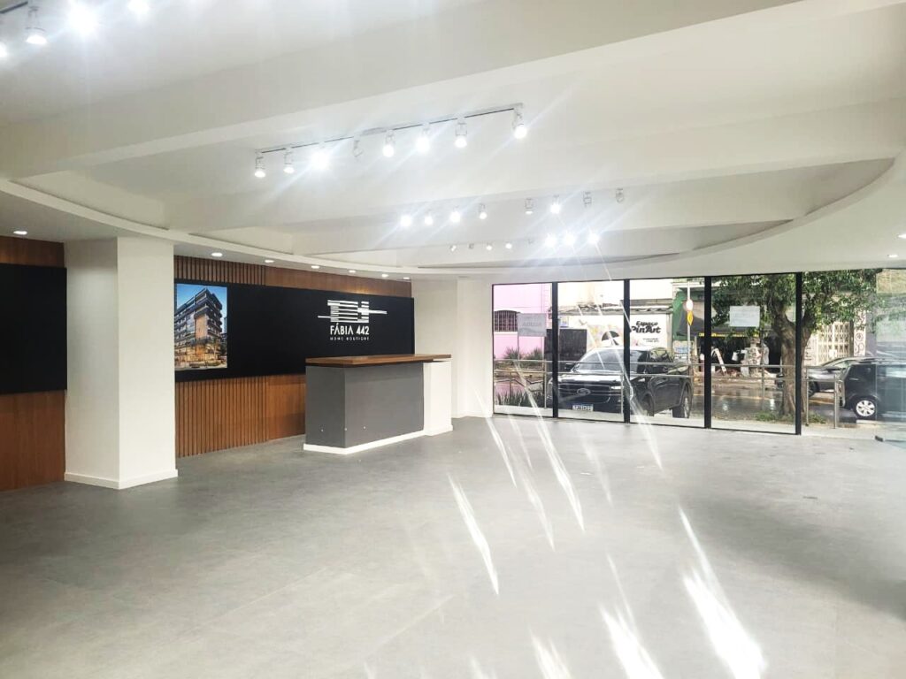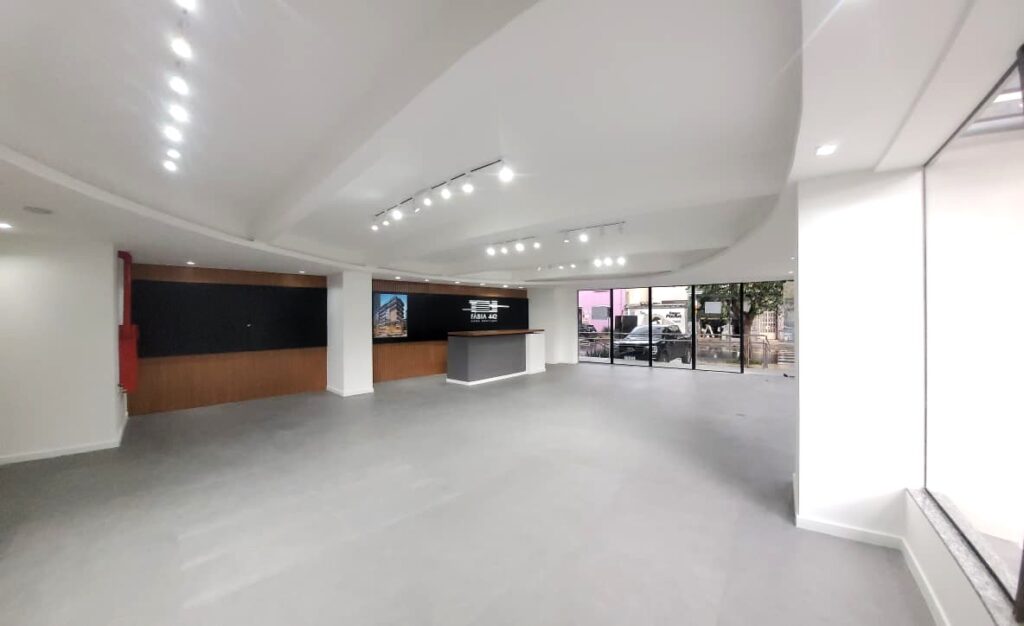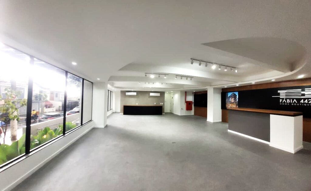 Loja NOVA, primeira locação, localizada na esquina da rua Fábia e rua Vespasiano, com 102m2 de área útil, piso revestido com porcelanato, iluminação de teto feita com lâmpadas tipo LED, sanitário com lavatório e duas áreas isoladas que permite uso variado do espaço. Fachada de ambos os lados em vidro que permite alto nível de iluminação natural. O imóvel possui 2 vagas para carga e descarga diante da loja.
