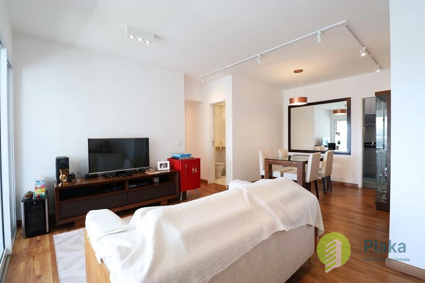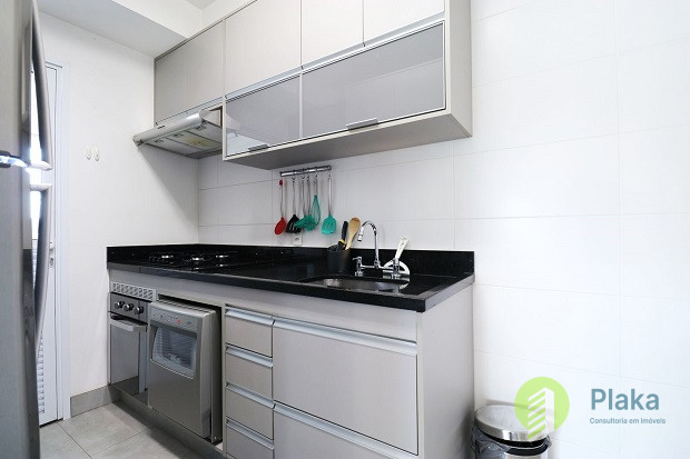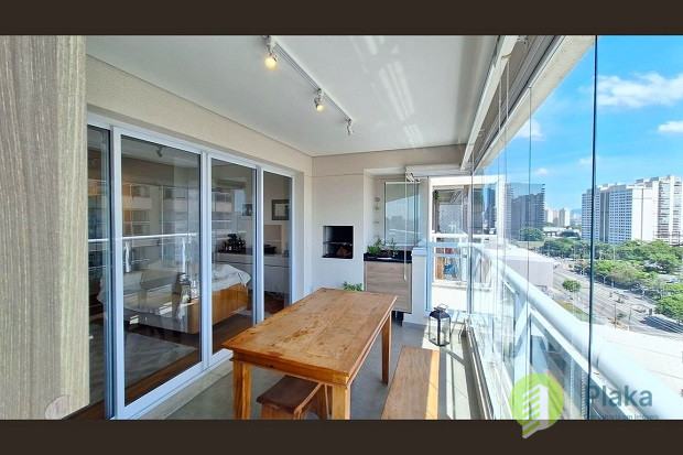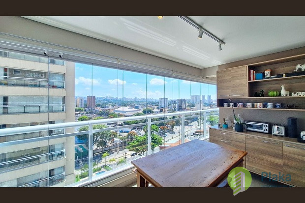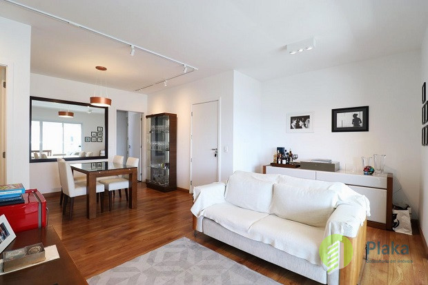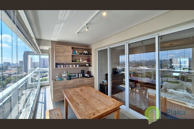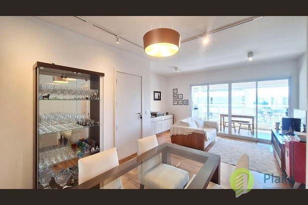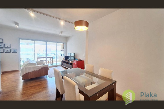 Apartamento com 88 metros quadrados, possuindo duas suítes. Piso em madeira, semi novo. Sacada envidraçada e cortina rolon. Sala com dois ambientes e cozinha americana. Com relação a cozinha, possui armários sob medida, com fogão cook top, forno, máquina de lavar louça e depurador de ar. Quartos com armários embutidos e ambos com suítes. Apartamento possui duas vagas de garagem.