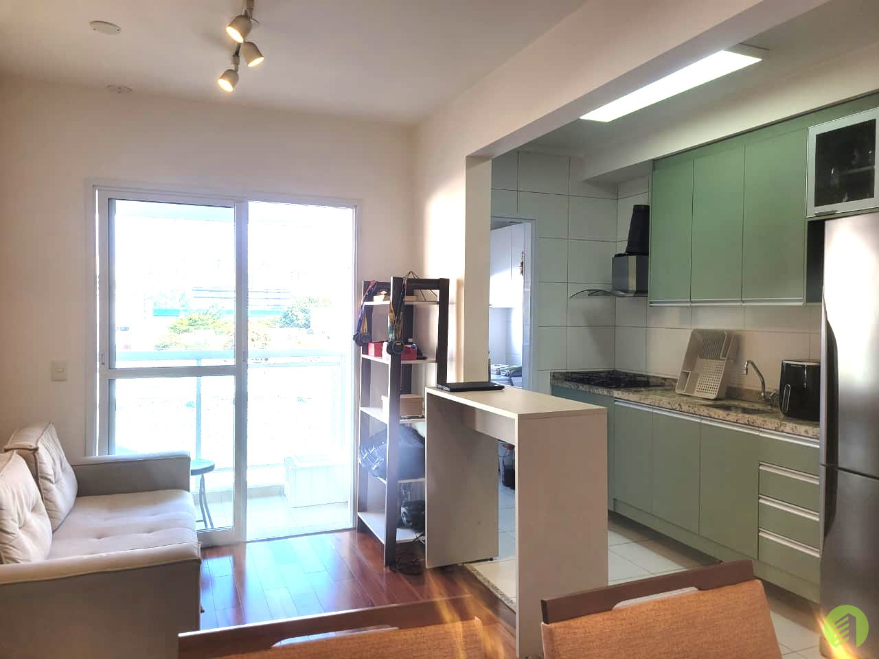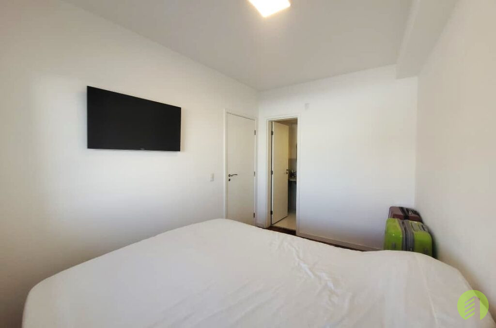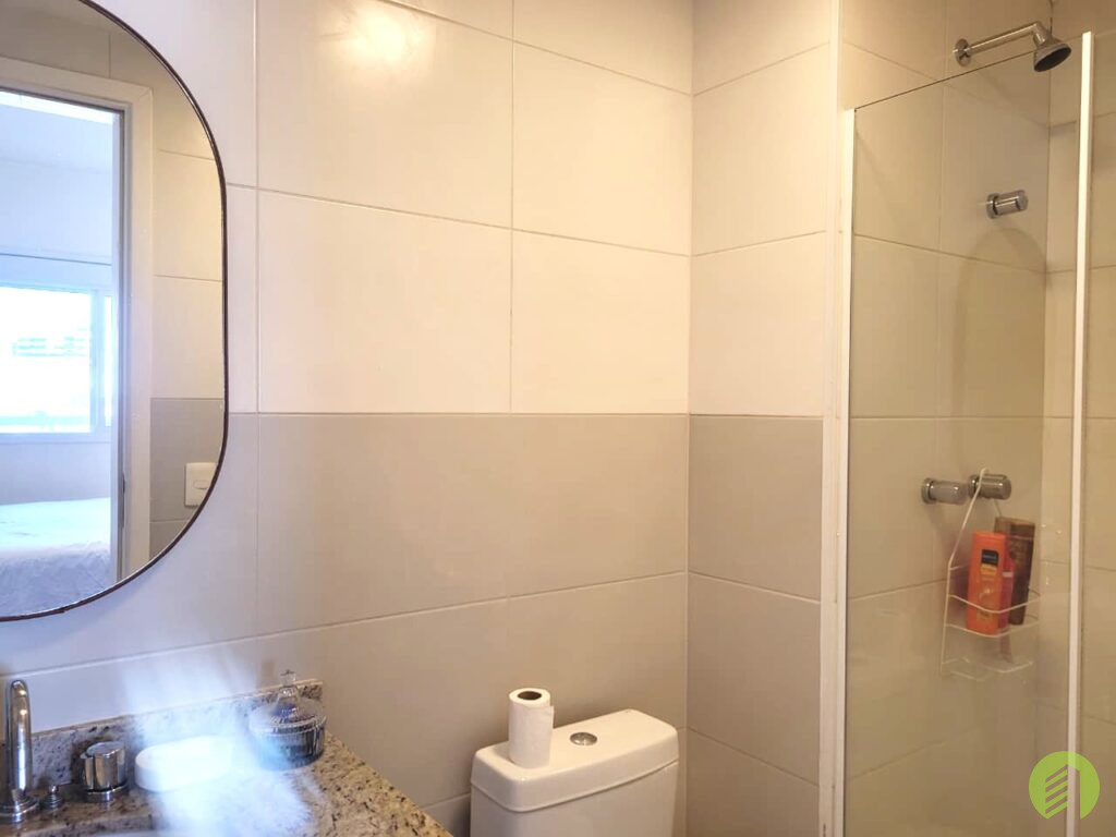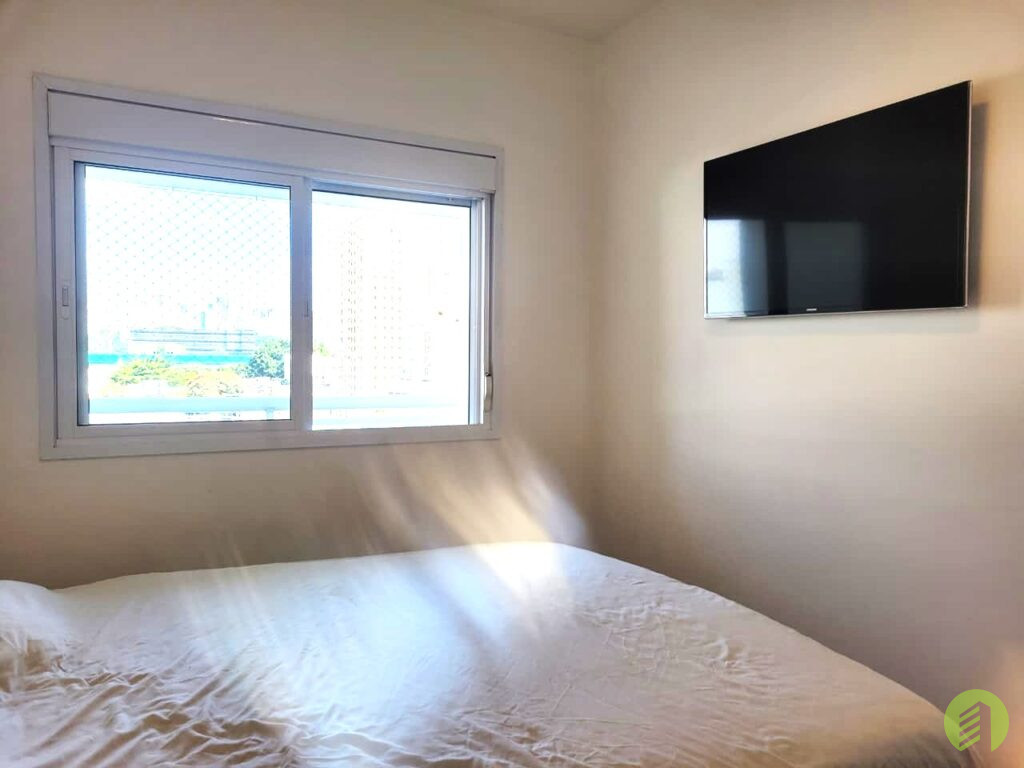 Apartamento da década de 2010, com 10 anos de construção, possui 45m2 de área útil distribuídos em um dormitório tipo suíte com piso revestido com tacos de madeira e janela que permite ótima iluminação natural. Banheiro com box em vidro temperado e aquecimento à gás, Sala com ambiente para TV e outro com mesa de jantar, e ainda oferece uma bela varanda. Cozinha americana com fogão tipo cooktop, forno elétrico e filtro d'água, tudo em ótimo estado de conservação. Área de serviço com espaço suficiente para máquina de lavar roupa e varal, boa ventilação local. O apartamento possui 1 vaga de garagem em local indeterminado.