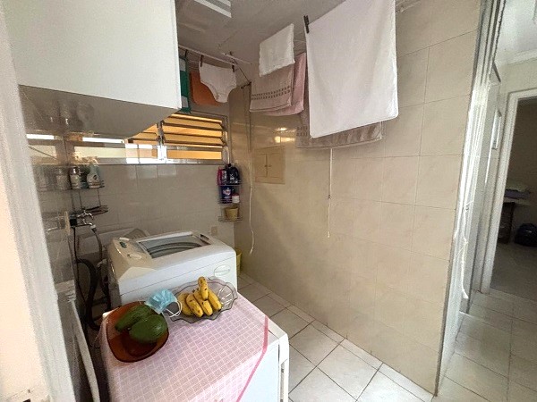 Construção da década de 70, estilo neoclássico, 50 anos, apartamento possui 130m2 de área útil, 02 dormitórios ( originalmente 03 dormitórios ), um dos quais tipo suíte, ambos com armário embutido e piso cerâmico combinando duas cores. 02 banheiros com box em vidro temperado e duchas com aquecedor à gás. Sala com 2 ambientes ( sala de estar e sala de jantar ), cozinha ampla com armários planejados, Área de serviço e dependência de empregada. O apartamento possui 01 vaga de garagem.