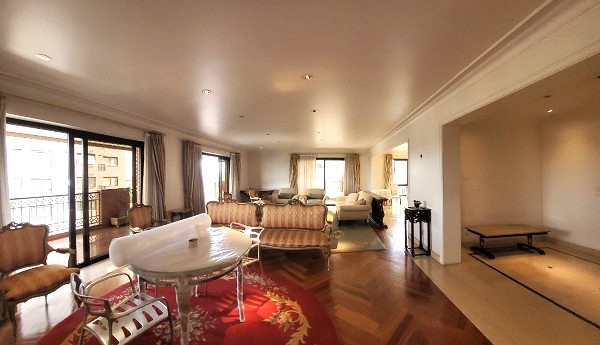 Apartamento do final da década de 90 com perfil modernista, 17 andares, 17 apartamentos, acesso através de elevador com senha. O apartamento possui 329m2 de área útil distribuídos em 03 suítes, originalmente eram 4 suítes, todas com armários embutidos e closet na suíte principal, banheiros com box temperado e banheira na suíte principal, aquecimento de água com caldeira central e piso revestido com tacos de madeira, tudo muito bem cuidado e em ótimo estado. Área social com sala de TV ampla e aconchegante, sala de estar circundada por uma bela varanda com piso em granito vermelho e vista livre e sala de jantar, destaque também para a iluminação suave e bem posicionada no forro de gesso . Seguindo adiante passamos pela copa e então estamos na cozinha com janelas amplas, ótima iluminação natural, armários planejados e bancada em granito. Área de serviço com espaço de sobra para instalar máquina de lavar e secadora, área de varal compatível e ótima ventilação. Finalizamos com a dependência de empregada completa, dormitório e banheiro. O apartamento possui 04 vagas de garagem em local determinado, sem auxílio de manobrista e com espaço para veículos grandes.