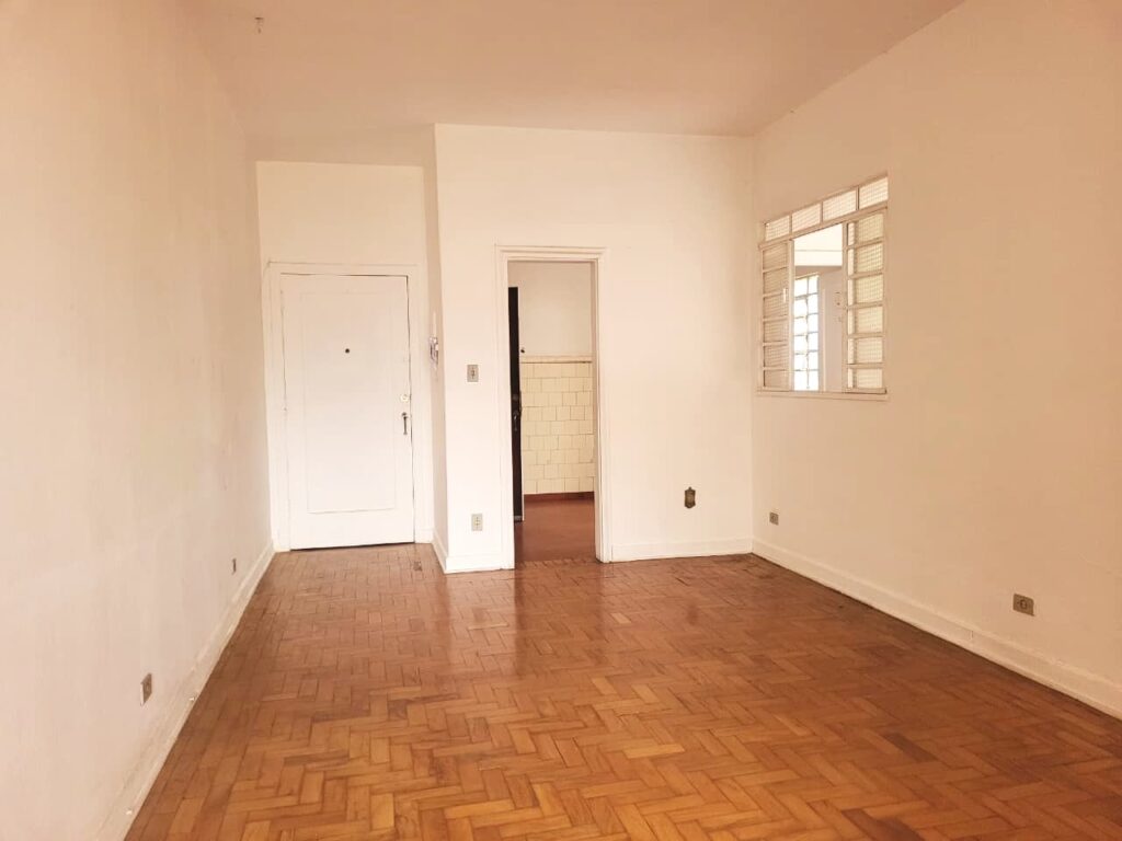 Apartamento da década de 70, construção com 56 anos, possui 105m2 de área útil distribuídos em 02 dormitórios, piso revestido com tacos de madeira e janelas amplas com boa iluminação natural. Banheiro social espaçoso, sala para 02 ambientes com varanda fechada, cozinha, área de serviço que acomoda facilmente máquina de lavar e secar, excelente ventilação e iluminação natural e finalmente dependência de empregada que pode ser revertida para escritório ou outro ambiente. O apartamento NÃO POSSUI VAGA DE GARAGEM. O apartamento precisa de reforma total.